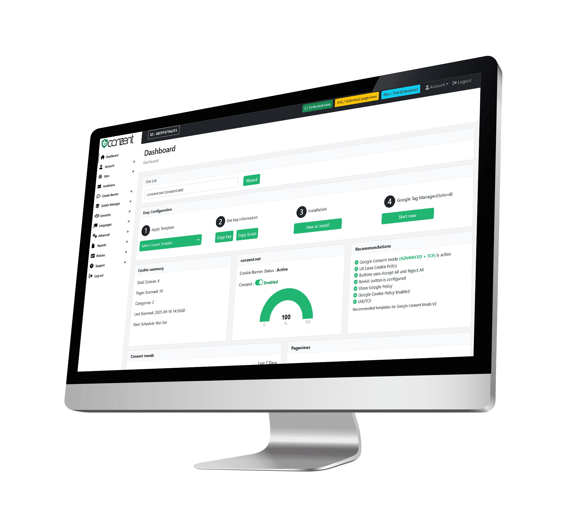 Beginnen Sie mit Conzent.net und erhalten Sie 100%iges Vertrauen, dass Ihre Cookies vor der Zustimmung des Benutzers gehandhabt werden.